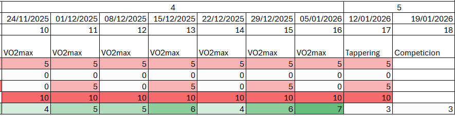 Vamos con lo divertido, tenemos toda la intensidad y trabajo general hecho, ahora toca machacar debilidades, hacer volumen, hacer los recordatorios de intensidad y buscar sesiones que nos trasladen por un pequeño espacio de tiempo a nuestra futura competición.